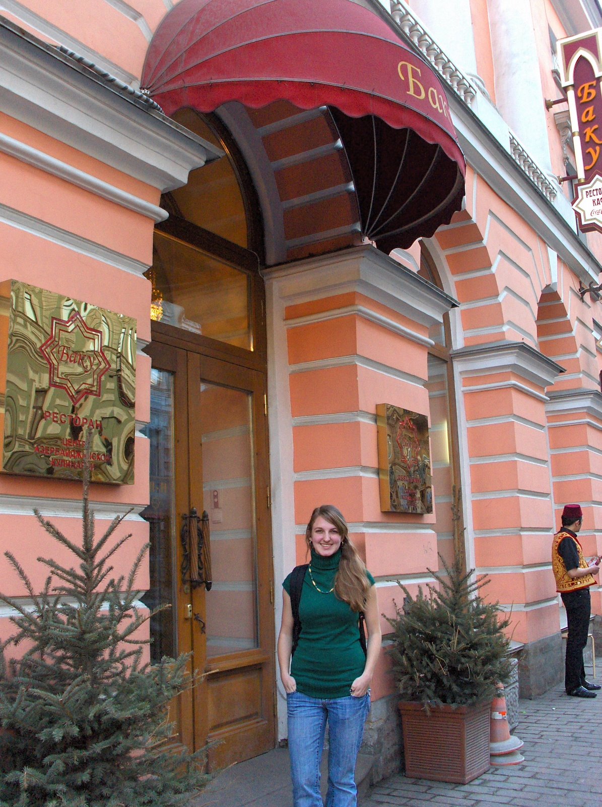 outside an Azerbaijani restaurant, AND the first day I was able to wear short sleeves! (yesterday)!!