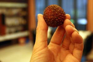 So, this is a picture of a lychee fruit. My friends from Singapore first introduced me to them when they were living in Texas. But, since lychees don’t grow in Texas, the only ones I’ve ever seen or eaten are ones from a can that have been pre-peeled and have been sitting in cans for who knows how long. So, it was really exciting to see the real thing. And they are DELICIOUS.