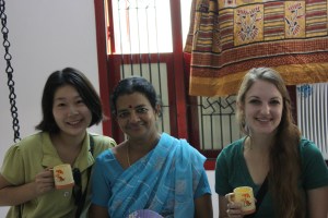 Some of Poorna cousins arrived and we all walked to his aunts house. She cookdd everyone a typical south Indian breakfast with iddly and sambar. There we met at least 5 more relatives… Before we left, his aunt presented both Yukiko and I with our own waters! Sweet!