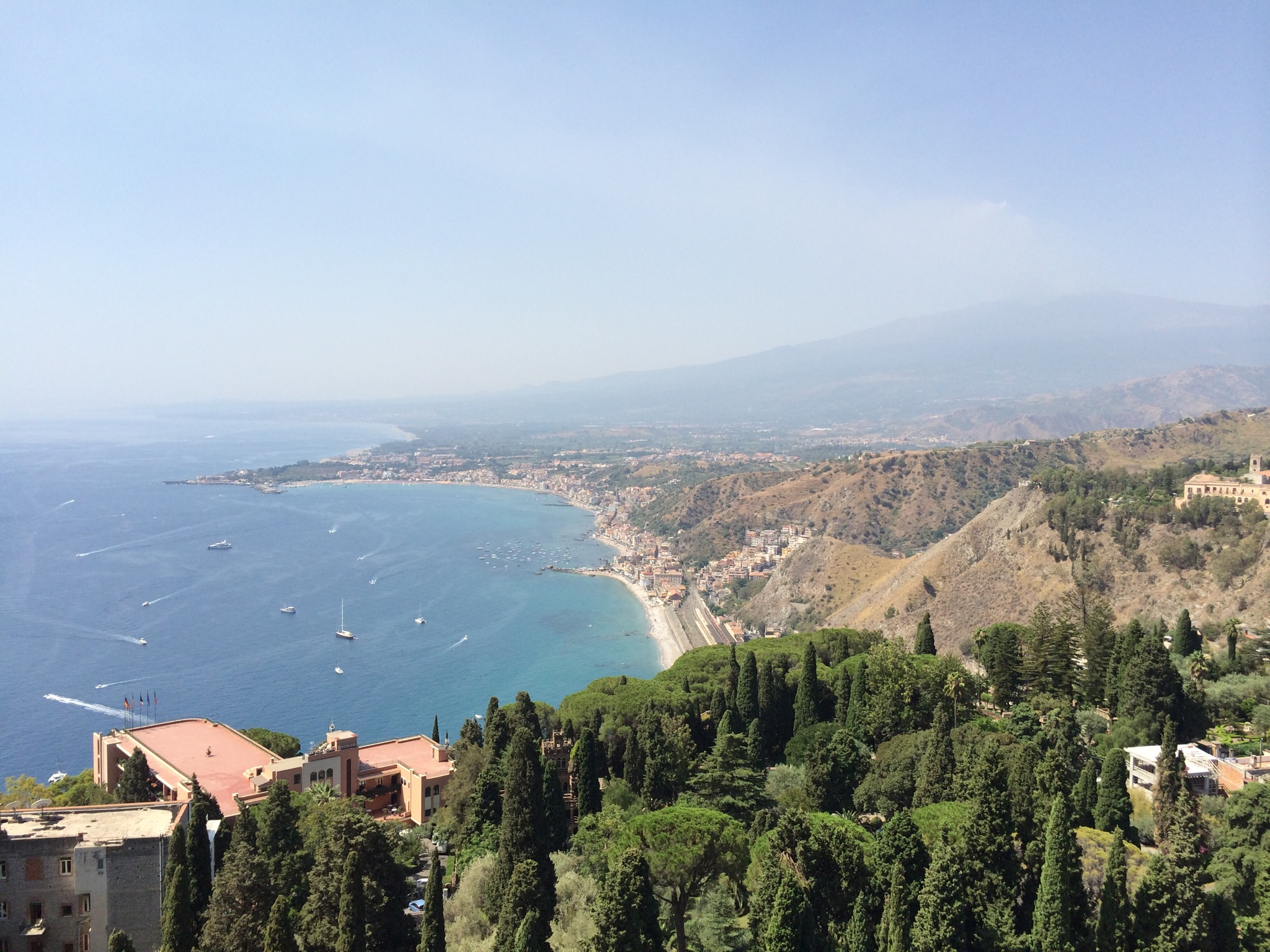 Today we explored Taormina nearby, including an ancient greek ampitheater that’s still used for tragic plays on weekends. Afterwards, we took a gondola to the sea and spend the afternoon on the rocky beach and sparkling water. Wow.