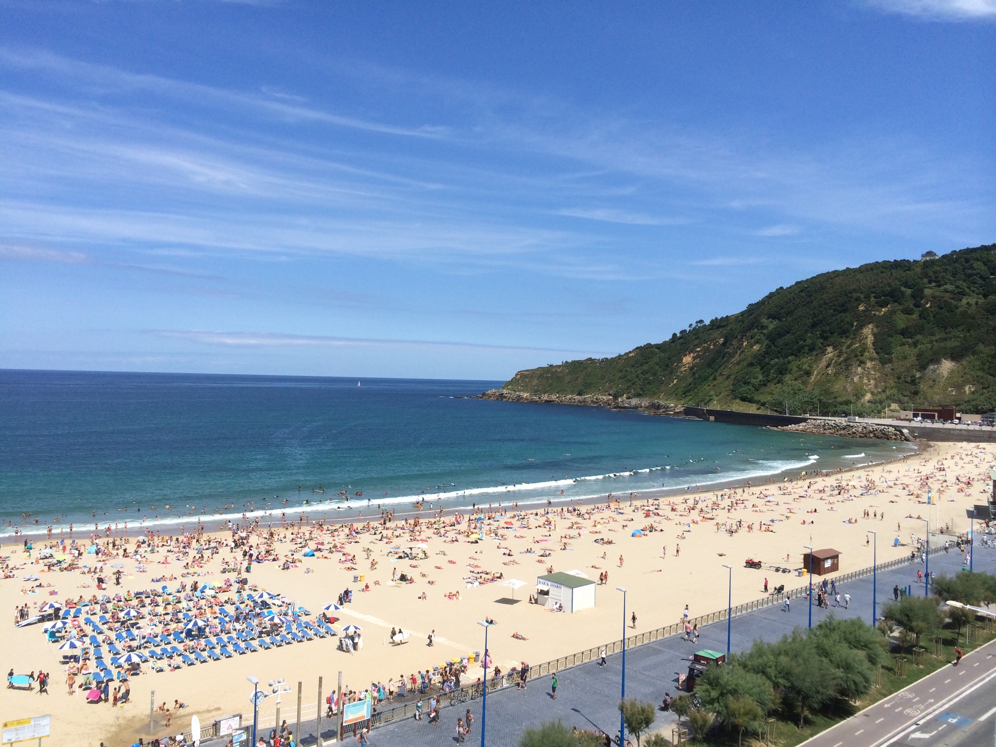 That’s Zurriola beach. It’s usually the main beach for surfers. Though today the water was really calm. To the left and around some hills there are 2 more beaches… More popular for swimming rather than surfing. One is La Concha. I can’t remember the other.
