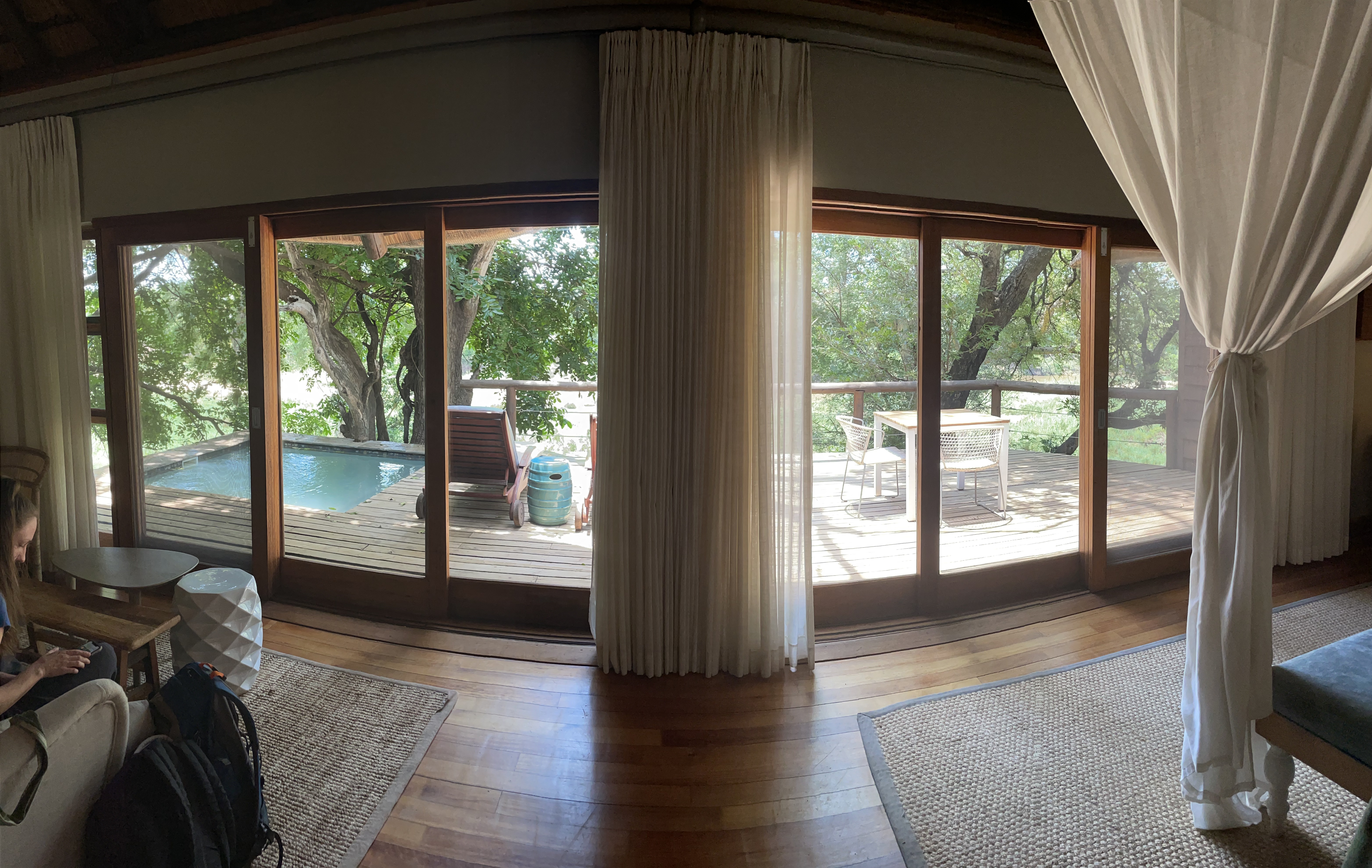 As our small plane landed in Kruger National Park, we saw an impala grazing near the runway! Wow! Our guide for the week greeted us inside the airport and drove us to our lodge where we had lunch before our first game drive. The views from the lodge as well as our room itself were STUNNING! Monkeys regularly came to enjoy our private pool and balcony, and we watched an elephant drink from the river out our bathroom window. We also had a family of hippos who seemed to live right outside and got to watch and listen to them as we were served a delicious ostrich burger for lunch! Who cares if it’s 100 degrees outside when you have this much life around you?!