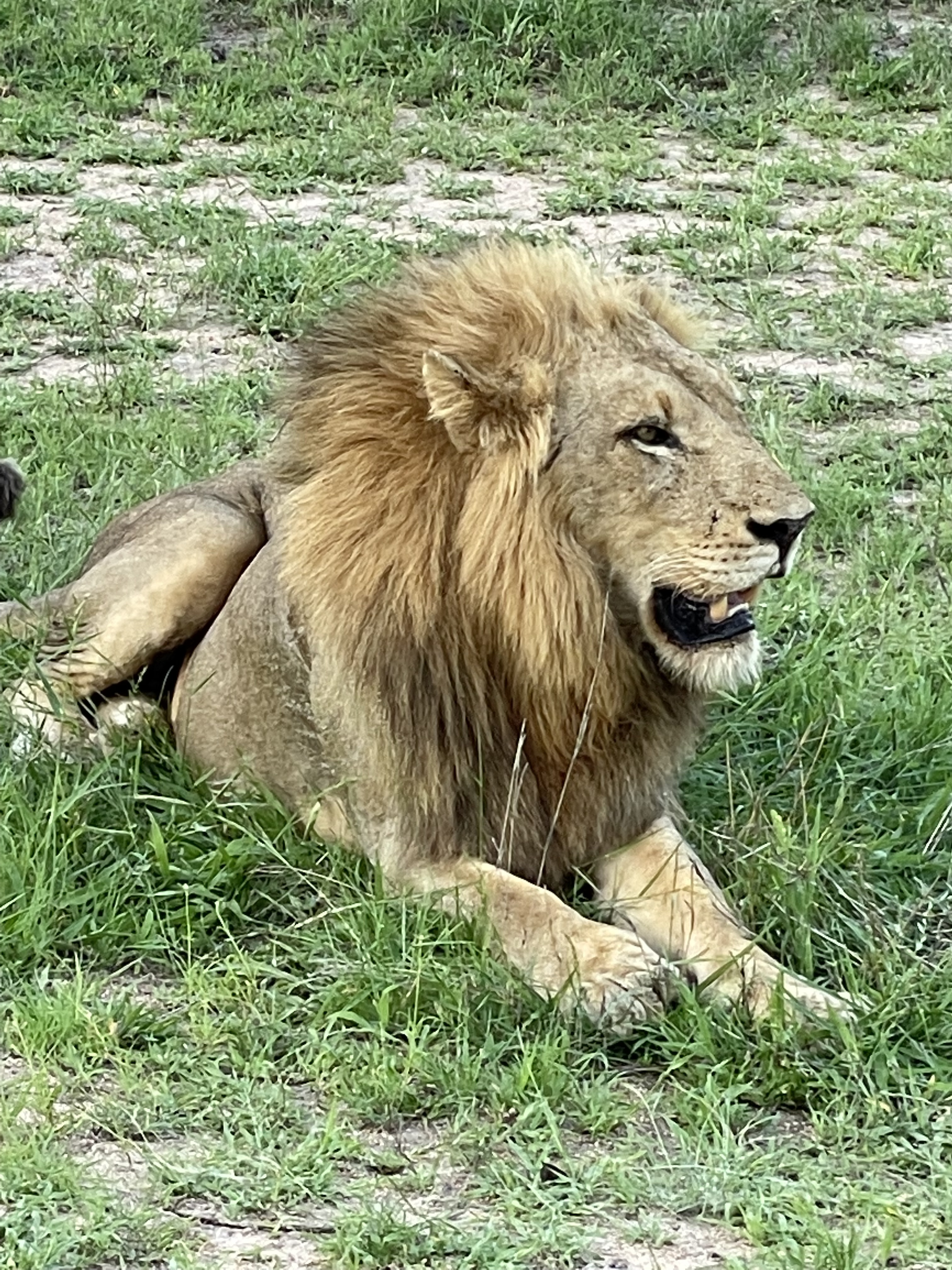 After the lions were a safe distance away, Mandla started the car… except that it didn’t start. He tried again with no success after the male lion slowly walked past up to take up the caboose of the lion line. The male paused briefly looked back as us one more time before continuing ahead past the brush. We laughed nervously. Kurt and Tapelo (from Botswana) got out to push. I was impressed with how calm our guide and tracker were. Mandla and Rexton are both professionals skilled in life on a safari, but they did their job well, both solving the problem and staying calm for the guests. Thankfully the car started with enough help from the pushing, and we made it back uneaten!