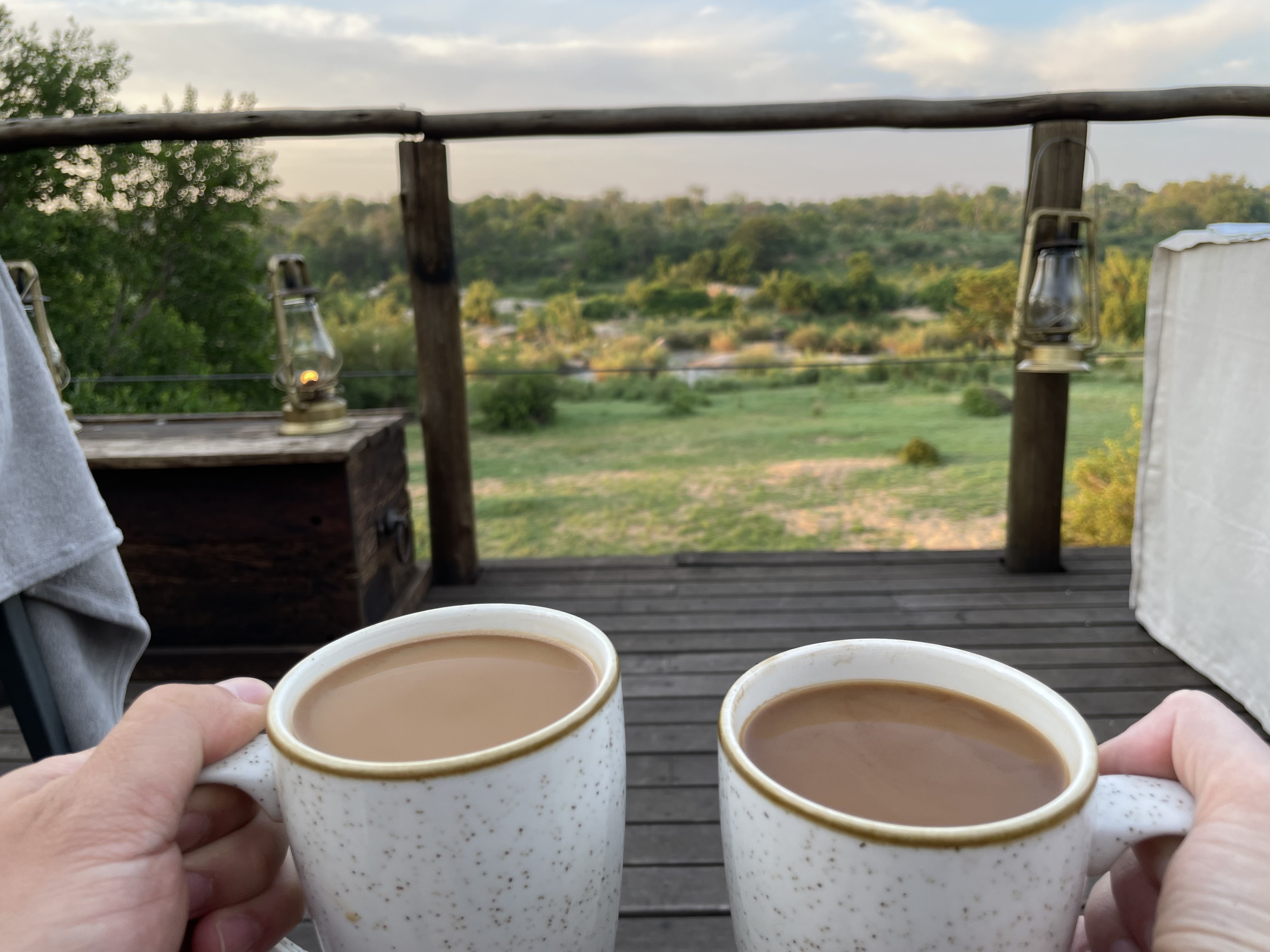 When the sun rose, we were awakened again by the grunts of hippos and chirps and squaks of the birds of the bush. We made ourselves some coffee and enjoyed the views until our trusty guide picked us up for our morning safari.