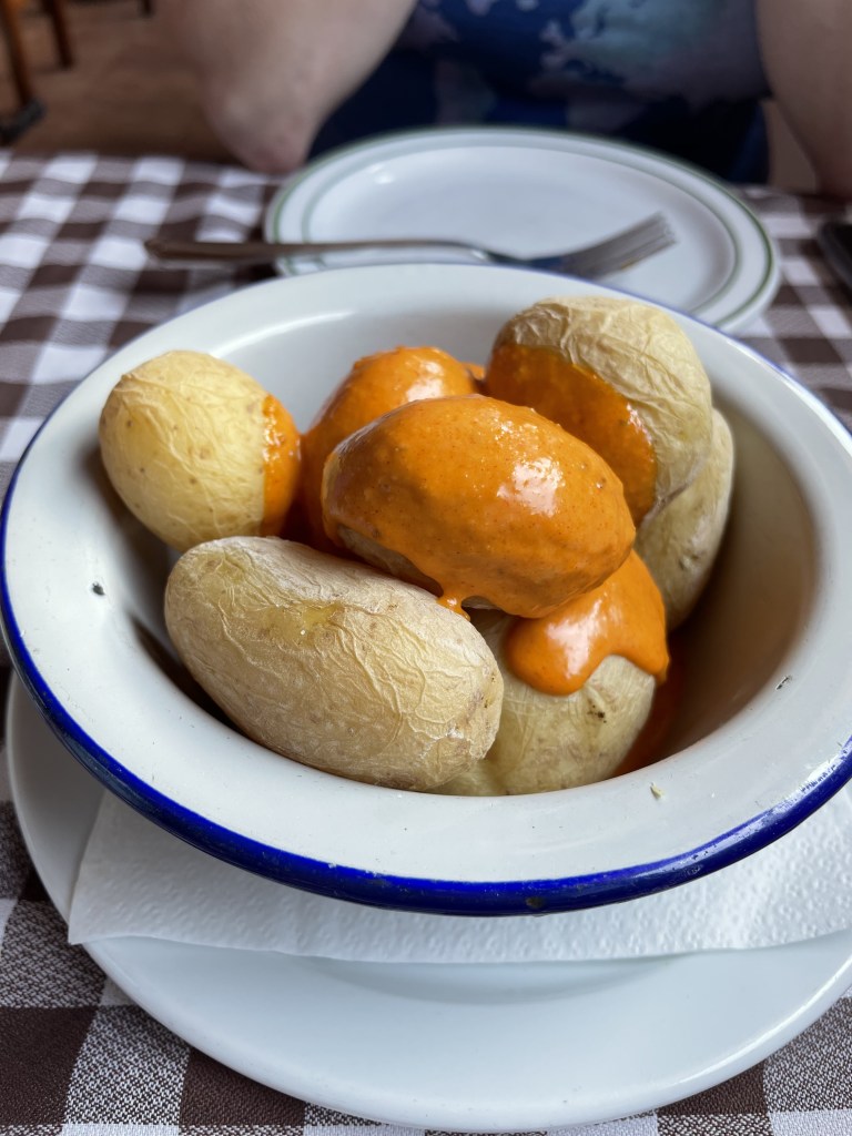 Around lunch time, we went back into town and headed towards one of the restaurants our friend had recommended. It was super crowded and the servers seemed overwhelmed. I asked if we could get a table for two and the head guy said somewhat shortly in Spanish, “You have to have a reservation.” We estarted to walk away, but then I turned back. Why not make a reservation for dinner? I waited a little bit awkwardly in between tables for him to make eye contact with me again because he was clearly busy and there wasn’t really a great place to stand that was out of the way. After a few minutes of being ignored, I went up to the bar slash kitchen where a bartender was sitting and the servers were grabbing their tickets/dishes. I asked if I could make a reservation. She was really nice and was in the middle of helping me make a reservation. One of the servers didn’t see me standing there and almost ran into me with his plate. He was super peeved. And the first guy who told us they had no space turned back around and came up to me and sorta yelled at me that I couldn’t stand there. I’m in the way. Hangry and annoyed, I said firmly, “Estoy haciendo una reserva. (I’m making a reservation.)” I have no idea which language the rest of the conversation was in because I felt worked up at that point since I both felt bad for being legitimately in the way but also annoyed and justified because I was simply trying to make a reservation to eat at their damn restaurant later in the day with one person who would actually help me make a reservation. My sweet husband who was born in the wrong generation because he LOVES making phone calls rather than any other means of communication be it text, email, online, etc. said, “We should have just called,” but that was before realizing we didn’t have a phone plan that allowed phone calls within the Canary Islands. But also it’s super intimidating talking on the phone in your non-native language, so I’d be lying if I said I wasn’t a little bit happy that wasn’t an option. Haha. In the end, we did successfully make a reservation for 8pm that night.